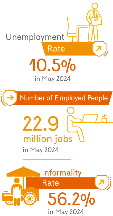 • The reduction in salaried employment, coupled with recent growth in the non-salaried segment, explains the increased informality rate. This rate stood at 56.2% in May 2024, one percentage point higher than in December 2023.