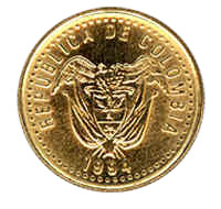 La imagen de perfil del libertador Simón Bolívar, con la leyenda "República de Colombia", año de acuñación y nombre "Simón Bolívar".