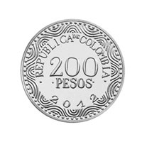 La guacamaya bandera (Ara macao), imagen de la moneda de 200 pesos, pertenece a la familia de los loros pscitácidos, sin duda los más coloridos de toda la Amazonía, especie representativa de la biodiversidad colombiana. Circula desde el segundo semestre de 2012.
