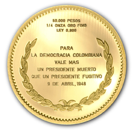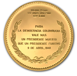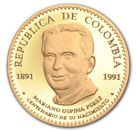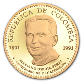 Moneda de oro de curso legal de 100.000 pesos oro, conmemorativa del primer centenario del natalicio del Doctor Mariano Ospina Pérez