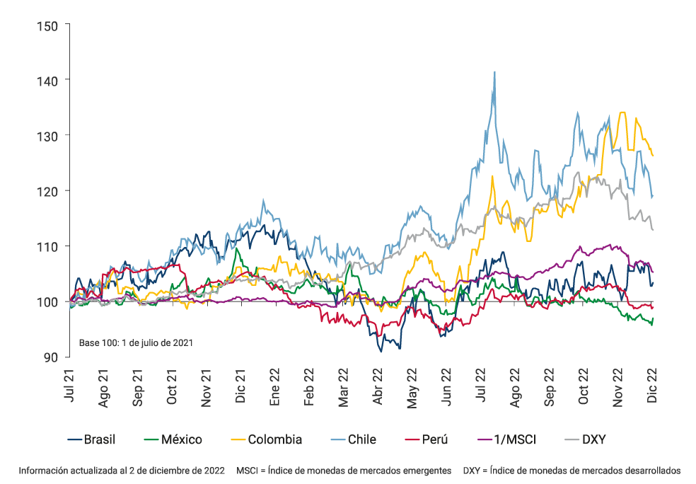 Durante 2022 y especialmente a partir de junio, el peso colombiano ha tenido un comportamiento volátil y una depreciación significativa. Este comportamiento se explica por factores de origen externo e interno. Entre los primeros ha jugado un papel importante la tendencia global a la apreciación del dólar como resultado de los aumentos de la tasa de interés por parte de la Reserva Federal de los Estados Unidos (FED). Entre los factores internos sobresale la incertidumbre sobre la política económica local en un contexto de amplios déficits externo y público.