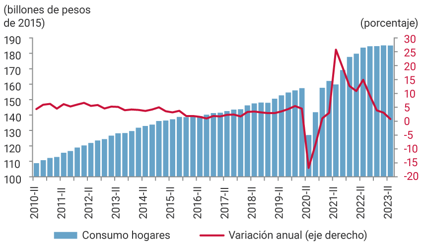 Gráfico 1: Gasto de consumo de los hogares y evolución de la cartera de consumo