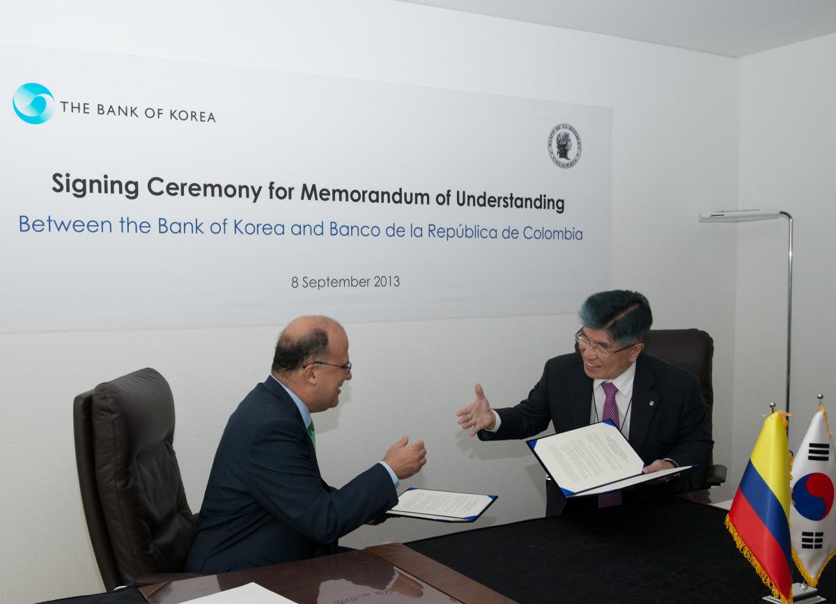 BANCO DE LA REPÚBLICA Y BANCO DE COREA FIRMAN MEMORANDO DE ENTENDIMIENTO SOBRE COOPERACIÓN Y ASISTENCIA TÉCNICA