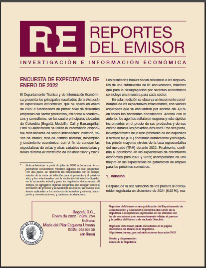Encuesta de expectativas de enero de 2022 - Reportes del Emisor