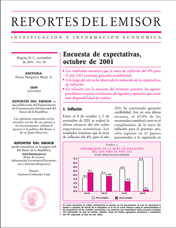- Los resultados muestran que la meta de inflación del 8% para el año 2001 continúa ganando credibilidad.