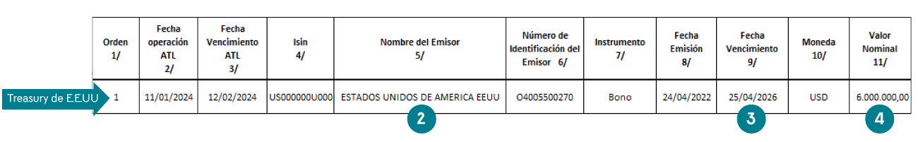 - En este ejemplo, se incluyen títulos emitidos en el exterior, dado que se instrumentará el ATL con un TES emitido en el exterior y un bono emitido por el gobierno de EE. UU.