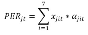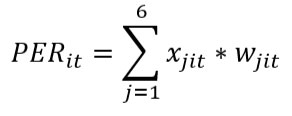 Donde PERjt corresponde al resultado del indicador de la actividad j para el total de las siete regiones en el período t, xjit es el resultado del indicador de la actividad j de la región i en el periodo t, y αjit es la ponderación de la actividad j de la región i en el periodo t, con ∑i=17αjit=1.