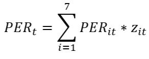 Donde PERt es el resultado del indicador agregado nacional en el periodo t, PERit es el resultado del indicador de la región i en el periodo t, y zit es el ponderador de la región i en el periodo t, dentro de la estructura productiva nacional, con ∑i=17zit =1.