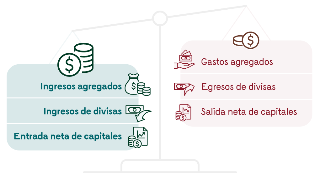 - Los ingresos agregados que genera y recibe la economía son mayores a sus gastos agregados en consumo e inversión (un balance de cuenta corriente positivo).