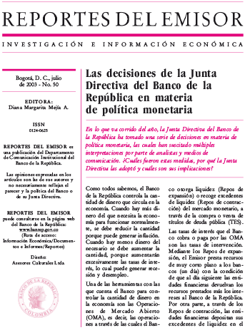 Reportes del Emisor es una publicación del Departamento de Comunicación y Educación Económica del Banco de la República. Las opiniones expresadas en los artículos son las de sus autores y no necesariamente reflejan el parecer y la política del Banco o de su Junta Directiva.