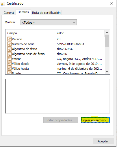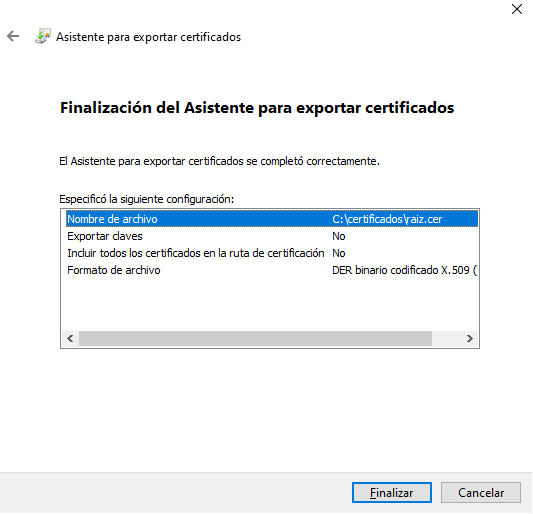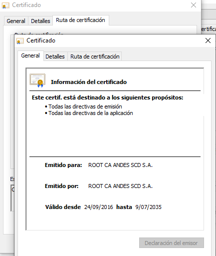 Esto abre una nueva ventana específica para el certificado ROOT (o raíz) del certificado