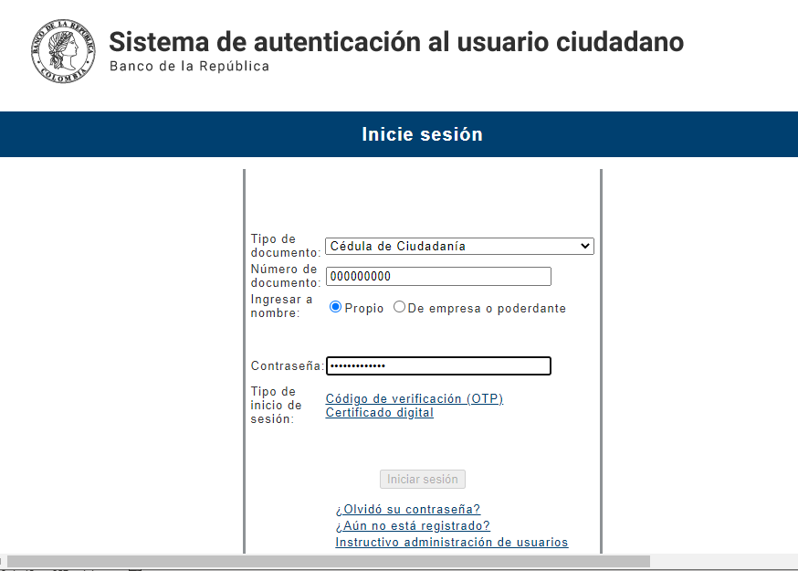 A través del Sistema de autenticación al usuario ciudadano, con un usuario registrado (Método Código de validación temporal) en el sistema, realizar los siguientes pasos: