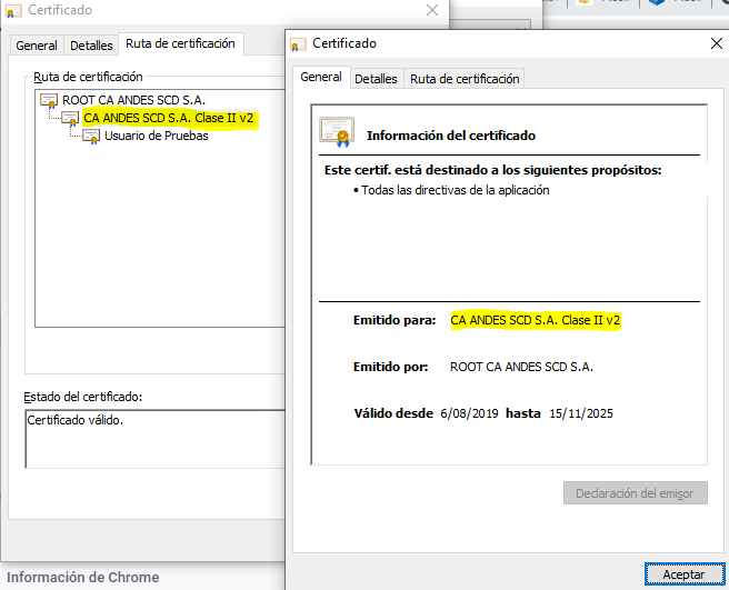 Se sugiere completar el siguiente procedimiento para facilitar el proceso de Homologación, este busca obtener la información pública del emisor del certificado, en ningún caso información personal, privada o reservada del usuario.