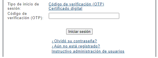 Cuarto: Ingresar los datos de autenticación y seleccionar la opción de "Código de verificación (OTP)":