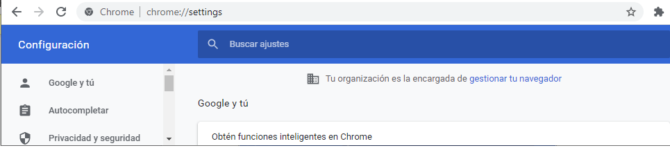 Segundo: Digitar en la barra de navegación la siguiente URL: chrome://settings/