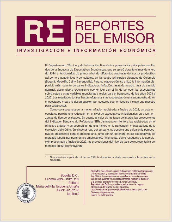 Reportes del Emisor es una publicación del Departamento de Comunicación y Educación Económica del Banco de la República. Las opiniones expresadas en los artículos son las de sus autores y no necesariamente reflejan el parecer y la política del Banco o de su Junta Directiva.