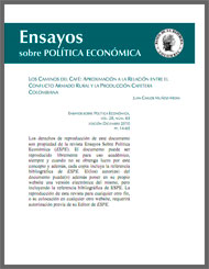 En la revista Ensayos sobre Política Económica (ESPE) divulgamos los resultados y las propuestas de política que surgen de investigaciones académicas realizadas en el Banco de la República. Cuando nos lea, tenga siempre presente que el contenido de nuestros artículos, así como los análisis y conclusiones que de ellos se derivan, son exclusiva responsabilidad de sus autores. El material divulgado en nuestra revista ESPE no compromete ni representa la opinión del Banco de la República ni la de su Junta Directiva.
