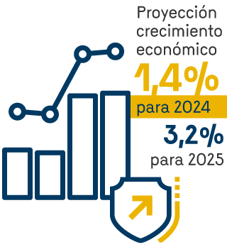 - Para 2024 se proyecta un crecimiento económico del 1,4 %, impulsado por el consumo y a pesar de un débil desempeño esperado de la inversión.
