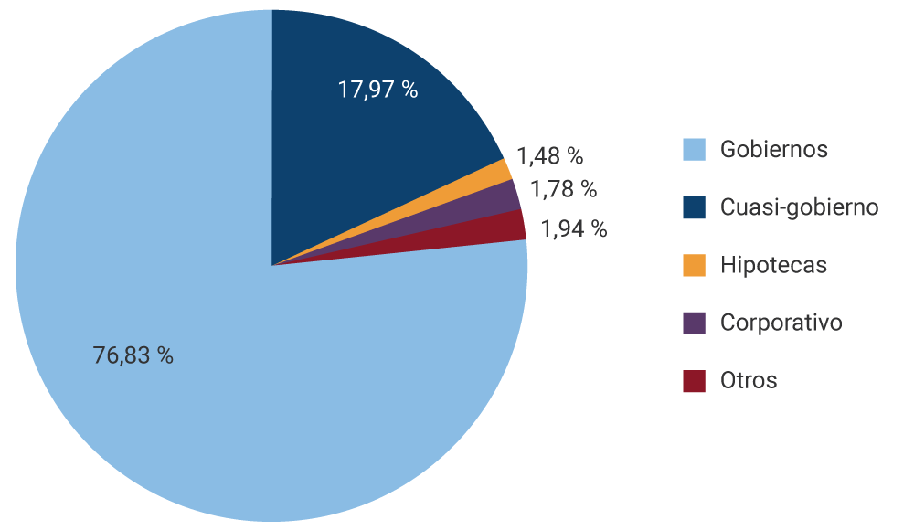 Al cierre de diciembre de 2022 las reservas internacionales estaban constituidas principalmente por títulos emitidos por gobiernos y entidades relacionadas con gobiernos.