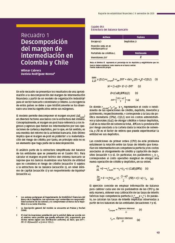 Recuadro 1: Descomposición del margen de intermediación en Colombia y Chile - Reporte de Estabilidad Financiera del segundo semestre 2021