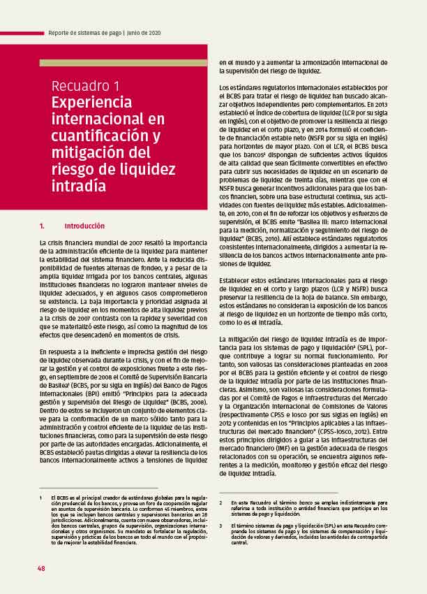 Recuadro 1: Experiencia internacional en cuantificación y mitigación del riesgo de liquidez intradía - Reporte de Sistemas de Pago - 2020
