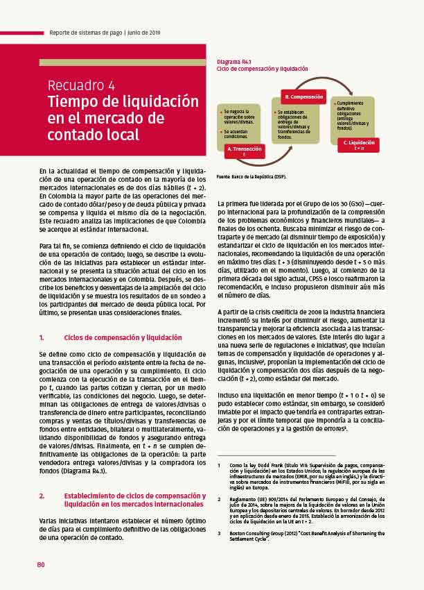 Recuadro 4: Tiempo de liquidación en el mercado de contado local - Reporte de Sistemas de Pago - 2019