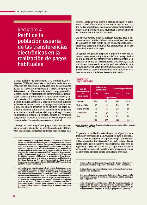 Recuadro 4: Perfil de la población usuaria de las transferencias electrónicas en la realización de pagos habituales - Reporte de Infraestructura Financiera - 2021