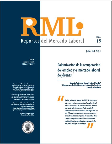 La serie de Reportes del Mercado Laboral (RML) es una publicación trimestral del Grupo de Análisis del Mercado Laboral (Gamla) del Banco de la República, creado en 2017. Las opiniones y posibles errores son responsabilidad exclusiva del autor y sus contenidos no comprometen al Banco de la República ni a su Junta Directiva.