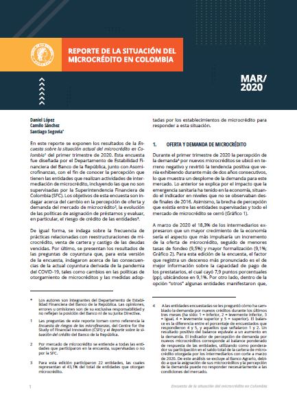 Reporte de la situación del microcrédito en Colombia - Marzo de 2020