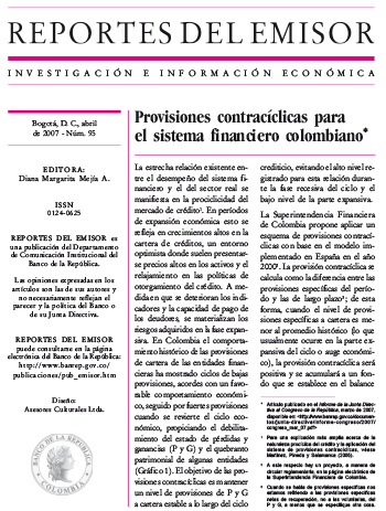 Reportes del Emisor - Provisiones contracíclicas para el sistema financiero colombiano