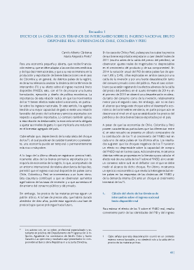 Recuadro 1: Efecto de la caída de los términos de intercambio sobre el ingreso nacional bruto disponible real: experiencias de Chile, Colombia y Perú