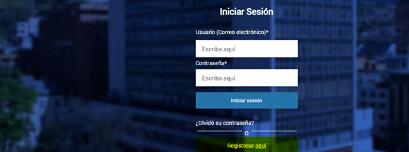 1.3. Si ya estás registrado(a) en la plataforma, debes iniciar sesión. Si no lo estás, registra una cuenta para poder utilizar el sistema, mediante la opción “Regístrese aquí”, la cual te solicitará nombres, apellidos, correo electrónico y contraseña.
